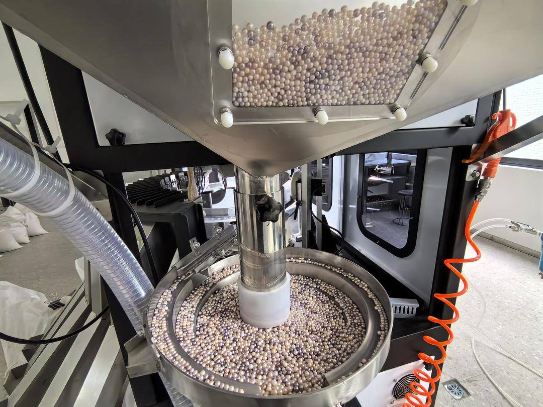 3月17日,在中国西部珍珠产业园内,工人们与机器高效配合着,对一颗颗珍珠进行分拣、打孔、串链等,然后流向市场,走向千家万户。