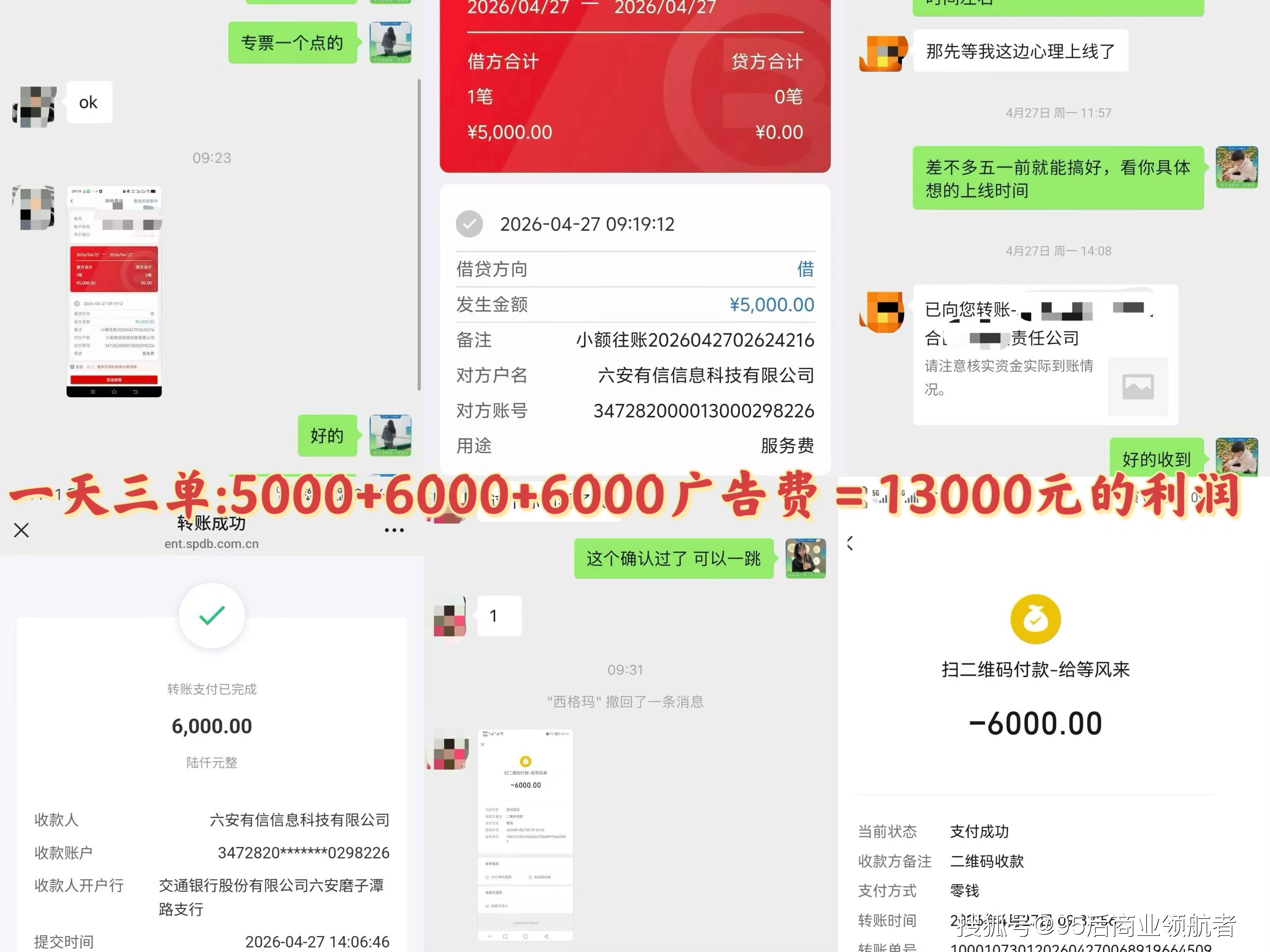 如果你也想从事互联网广告项目,可以和我们( 六安微点 )合作,不管说是行业经验,获客渠道、业务团队都是非常成熟的,是可以让合作伙伴快速起步,少走弯路。