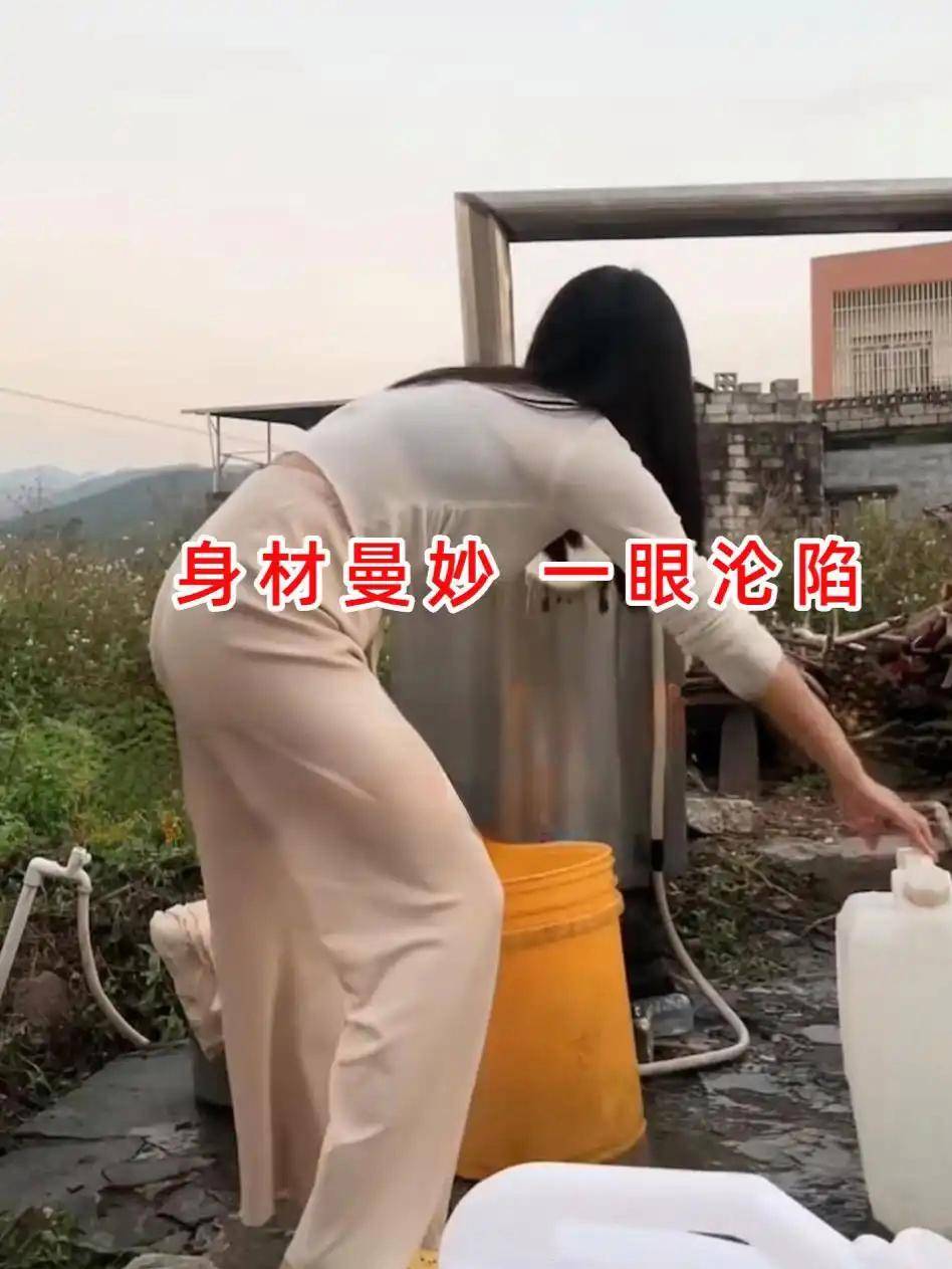 女子提起水桶去接水,她一个动作一个姿态都尽显婀娜之态,极其引人注目,展现出一个贤妻良母形象的感觉随之在脑海中产生 .