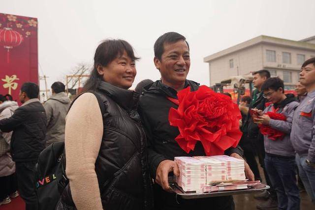 这位皮肤黝黑的汉子接过厚厚的现金,第一时间转身递给了身边的爱人,夫妻俩脸上的笑容藏都藏不住。